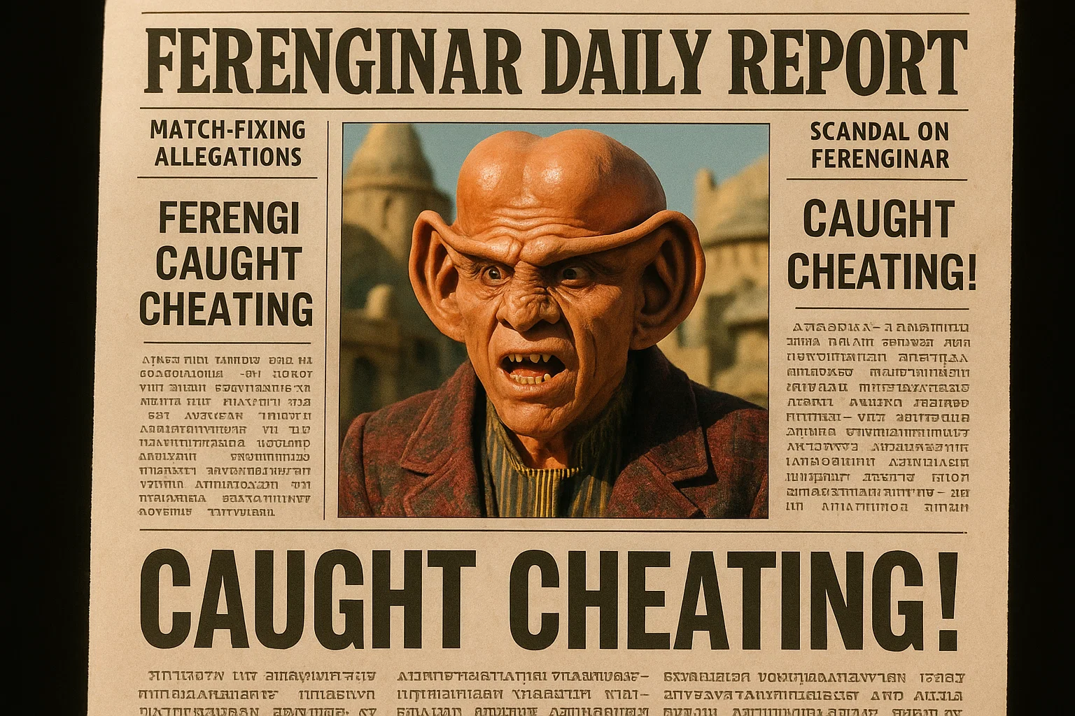 Die traditionell geschäftstüchtige Welt der Ferengi steht vor einem der größten Finanzskandale seit über einem Jahrhundert. Laut Berichten der Ferenginar Commerce Authority (FCA) wurden mehrere Großbanken, Wettkonsortien und mindestens zwei Mitglieder des Nagus-Rates in ein massives illegales Wettsystem verwickelt, das auf Manipulation interstellarer Ereignisse beruhte – darunter sogar auf den Ergebnissen des jüngst abgehaltenen Intergalaktische Song Contest 2416.